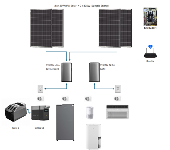 The system is currently maxed-out powering most of the appliances in the house. With my method of charging the Wave 2, I plan to do the same with my Delta 2 Max + extra battery, so that I can power other high-draw appliances in the house. This can easily be done using the automation feature.