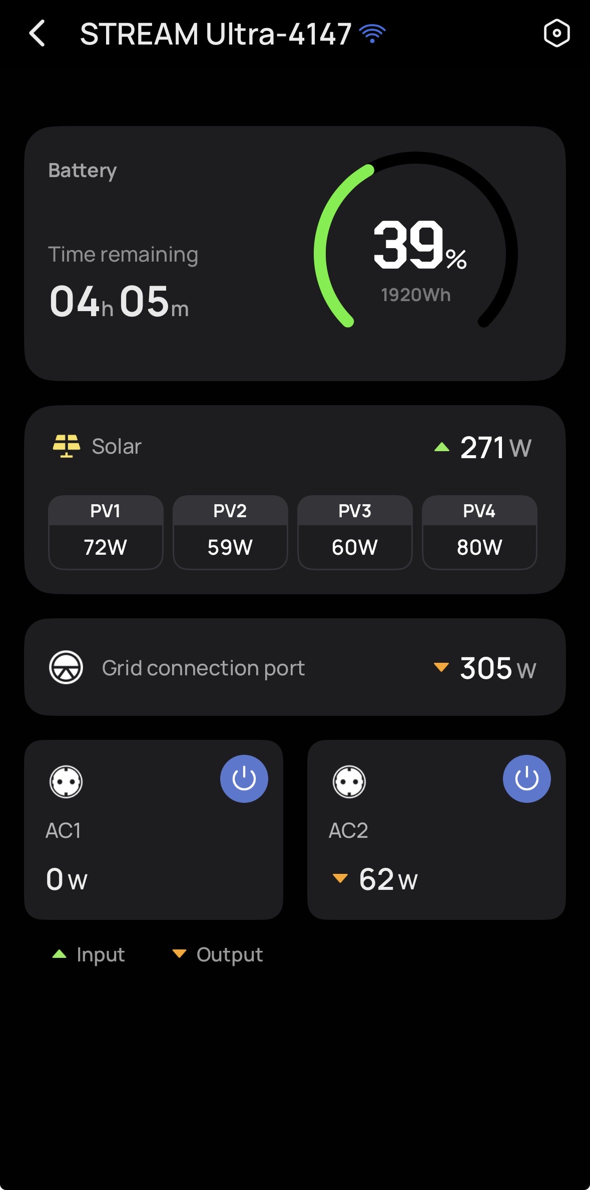 This is actually a good case to add another EcoFlow STREAM AC Pro, as the solar harvest is capable of charging the three units, again only on good days.